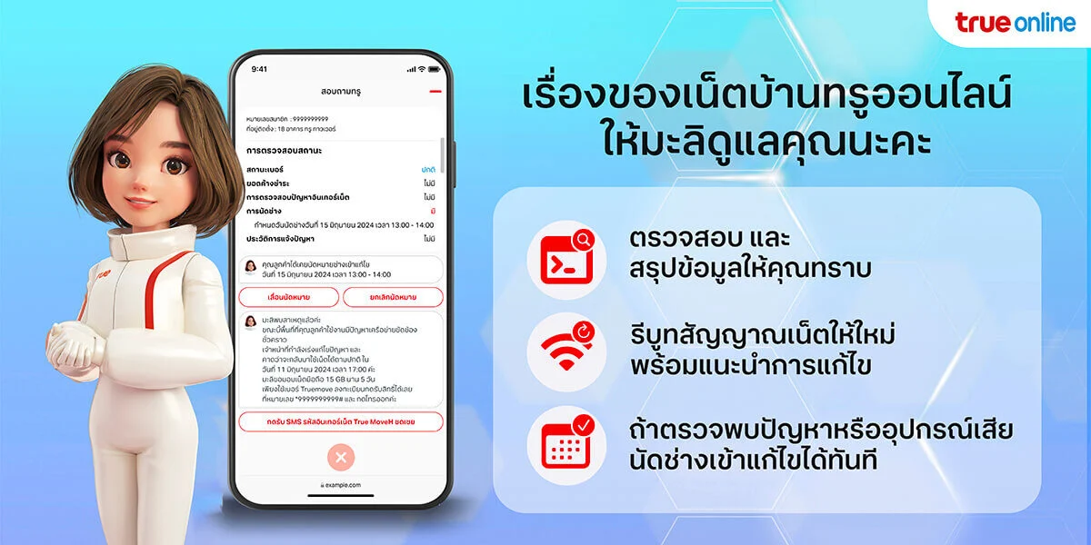 บางคนอาจพบว่าการติดเน็ตบ้านทรูเป็นเรื่องซับซ้อน แต่ทางทีมขายจะช่วยแนะนำเรื่องโปรเน็ตบ้านทรูที่เหมาะสม รวมถึงดำเนินการสมัครเน็ตบ้านทรูให้ภายในเวลา 10 นาที